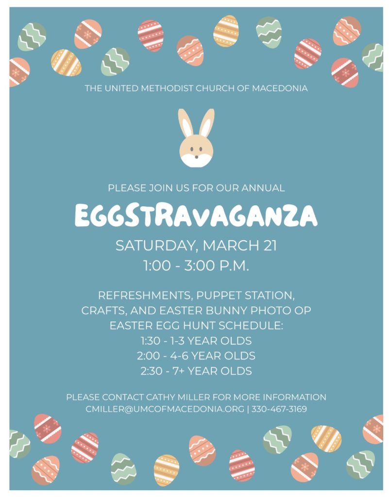 The United Methodist Church of Macedonia is inviting the public to a series of upcoming community events, including a social justice speaker series, a powerful musical production, and the annual community Easter egg hunt.