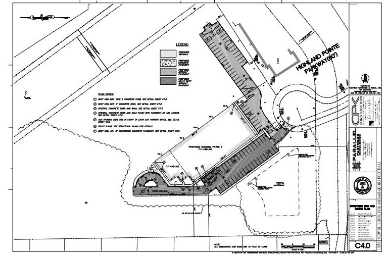 The shovels were dug into the earth while the crowd cheered on. This ground breaking event “kicked off” the Ambassadors Football Facility. The construction that is underway is phase 1 of the project, which is going to be a 23,000 sq ft practice area connected to a 4000 sq ft office space. Phase 2 which is planned for three years or so down the line, will be a 115 sq ft indoor soccer arena.