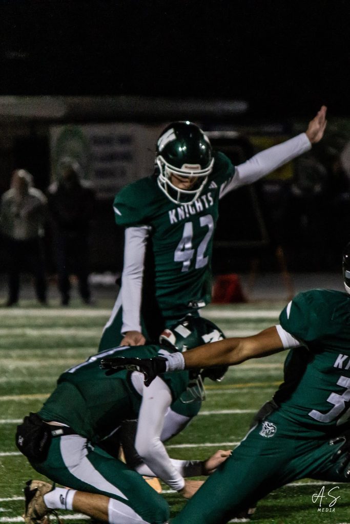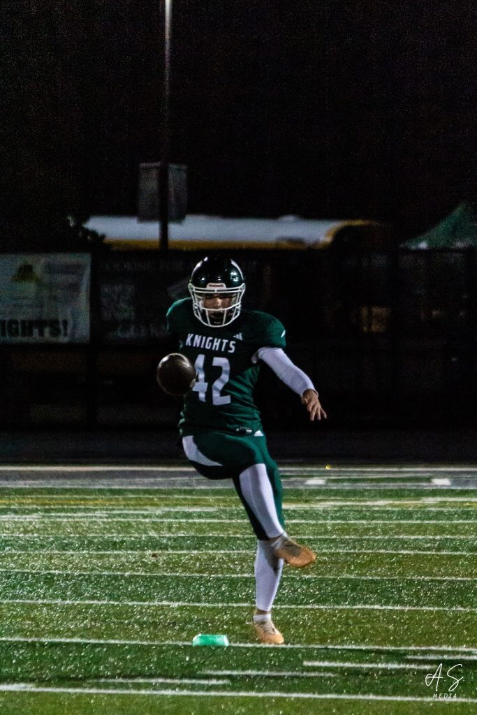 The Knights’ balanced offensive approach included 128 rushing yards on 28 attempts. Running back Seth Mayes led the ground game with 42 yards on five carries, while Brayden Koran capped the scoring with a 27-yard touchdown run in the fourth quarter.