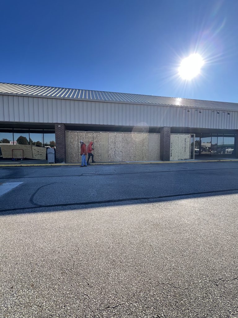 Shoppers passing through Northfield Plaza may have noticed new construction at the former American Freight location. The wooden framework visible at the storefront is part of a temporary window replacement project as the space prepares for its next tenant.