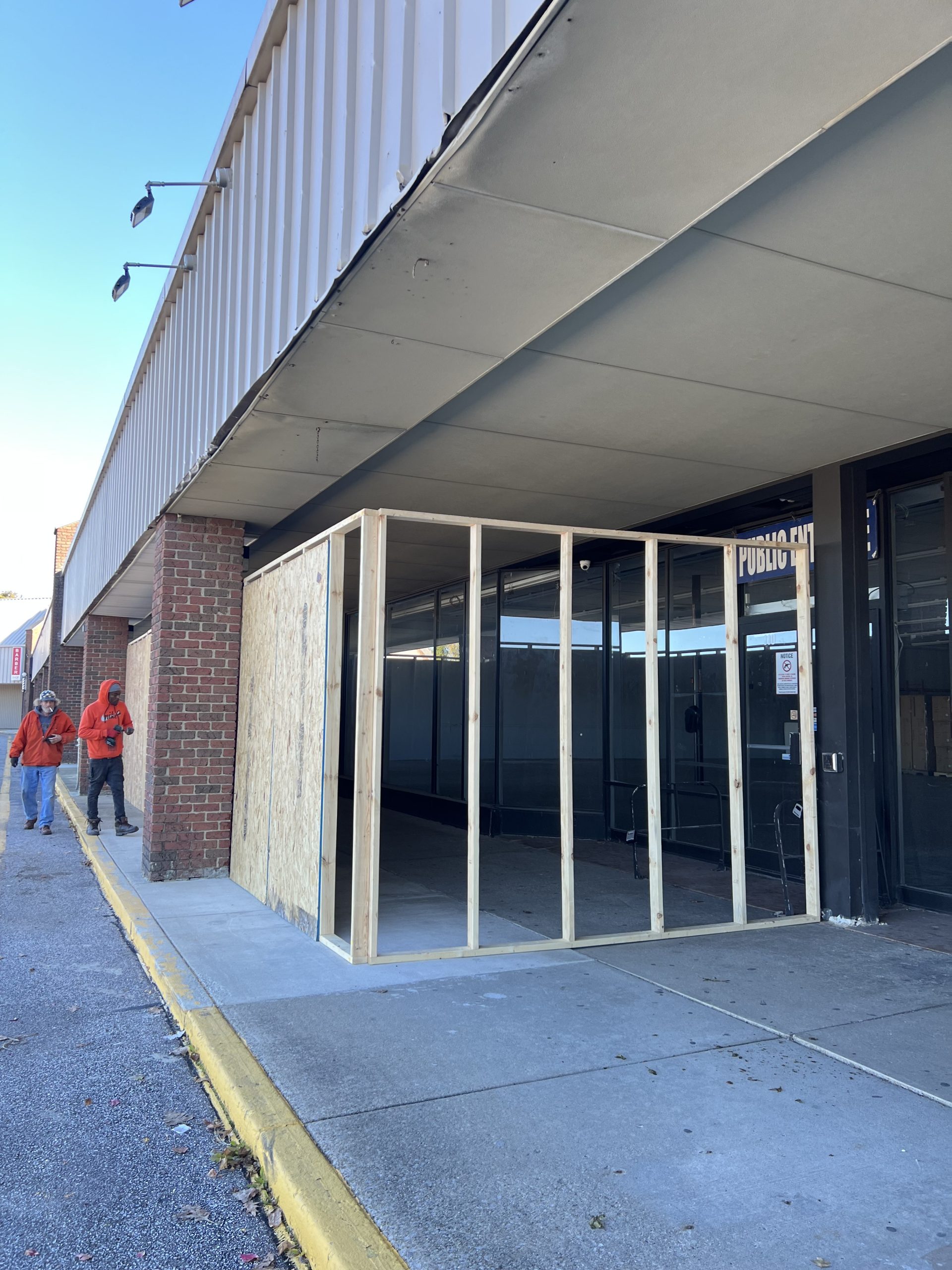 Shoppers passing through Northfield Plaza may have noticed new construction at the former American Freight location. The wooden framework visible at the storefront is part of a temporary window replacement project as the space prepares for its next tenant.