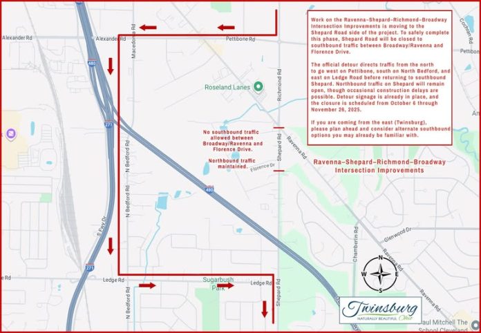 The official detour directs traffic from the north to go west on Pettibone, south on North Bedford, and east on Ledge Road before returning to southbound Shepard. Northbound traffic on Shepard will remain open, though occasional construction delays are possible. Detour signage is already in place, and the closure is scheduled from October 6 through November 26, 2025.